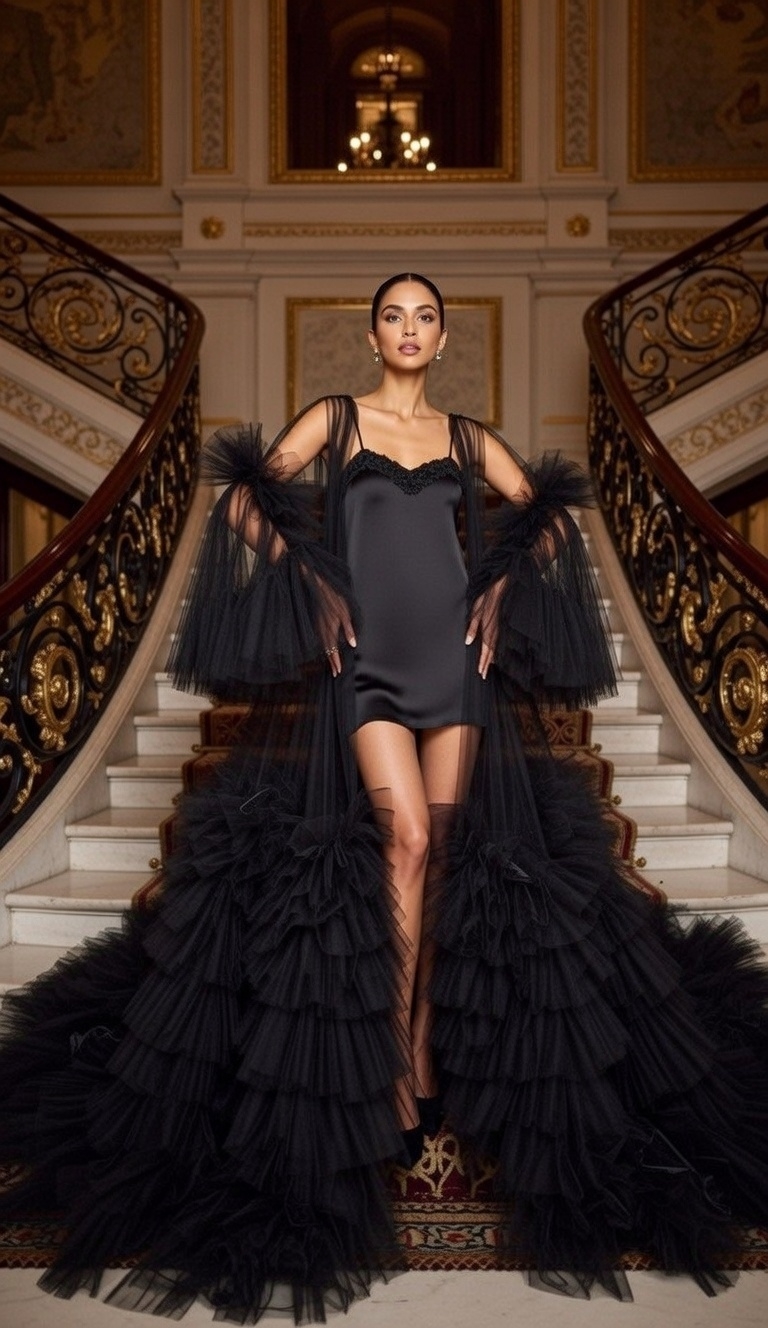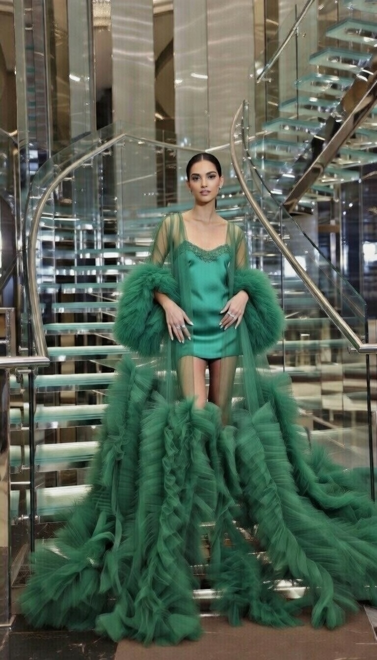 Designed for evening occasions, bridal moments, and elegant celebrations, this piece moves effortlessly while maintaining structure and presence.