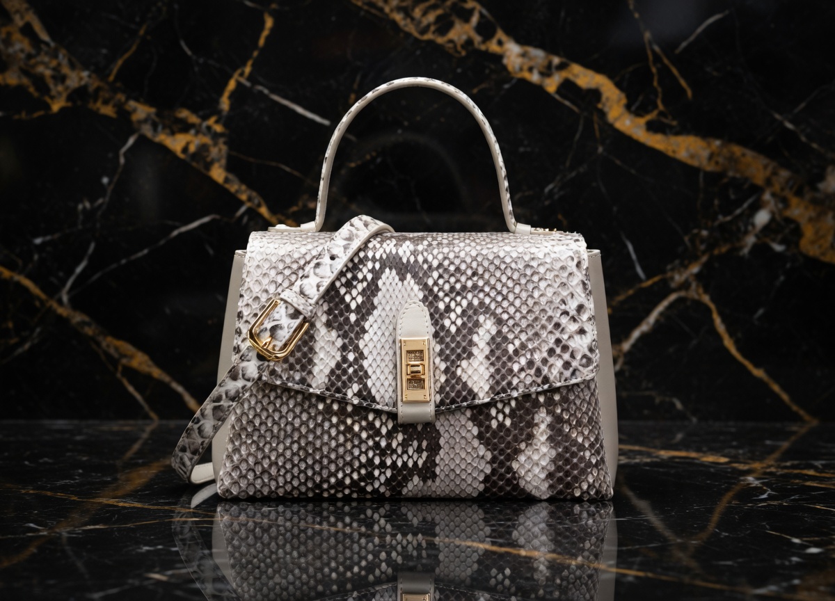 Command the pinnacle of accessory design with the VÉRION Serpentine Apex. As a primary legacy piece of the Exotic Atelier, this satchel is meticulously constructed from master-grade python skins, curated for their high-contrast, symmetrical scale patterns and natural texture. The bag’s silhouette is a refined trapezoid, engineered to maintain its sharp, structural lines through an internal reinforced chassis, making it a cornerstone of the modern “Quiet Luxury” wardrobe.